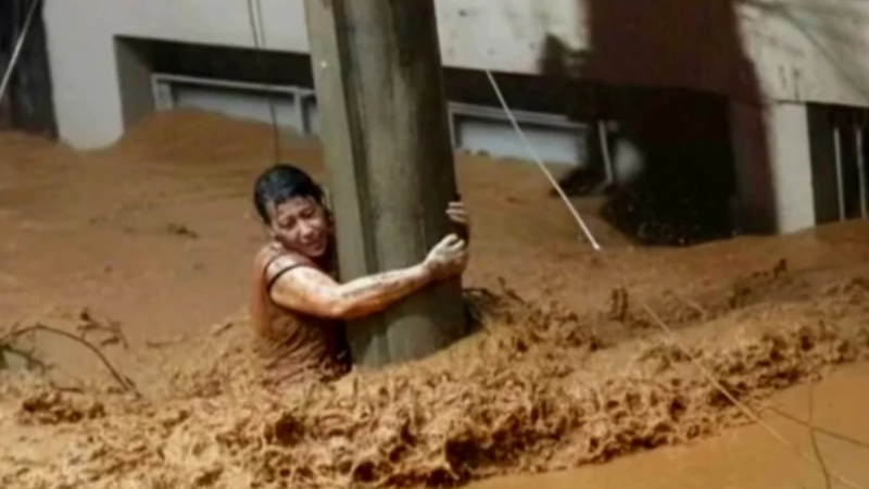 A empresária foi resgatada por vizinhos quando o nível da água começou a baixar. O filho dela também conseguiu sobreviver. Já o namorado foi levado pela enxurrada e, até a última atualização, seguia desaparecido.