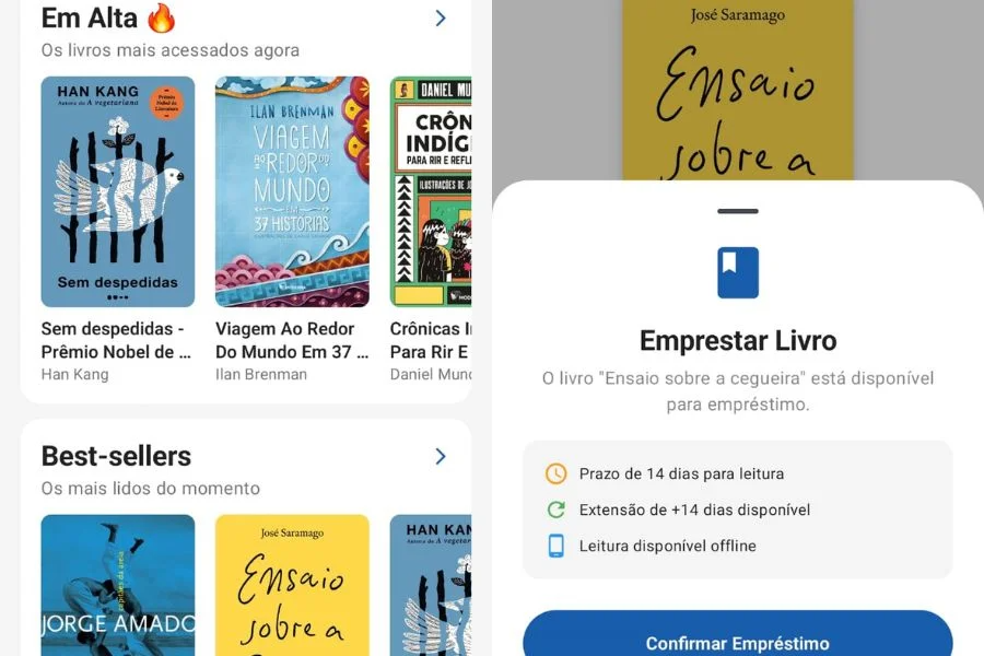Outro ponto importante da plataforma é a integração com inteligência artificial, com um agente que ajuda o usuário a escolher a próxima leitura, recomendar outras obras com base em suas preferências e tirar dúvidas sobre o acervo disponível.